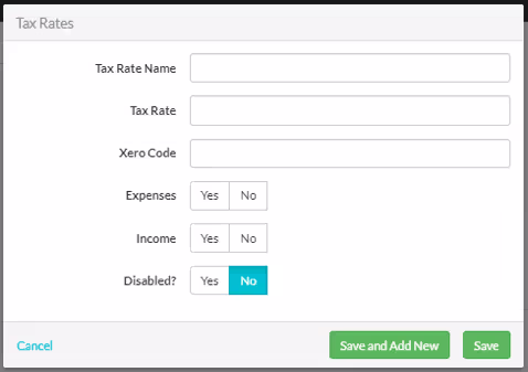 To add a new Tax Rate, click the Add New button in the top right-hand corner of the screen. Add Tax Rate details and click Save.