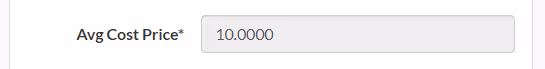 The Avg Cost Price on the Product updates to 10.00 once the Stock Adjustment is complete.